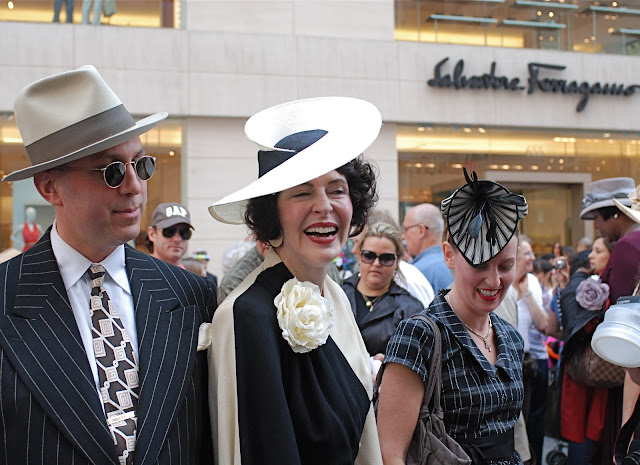 Easter bonnets, ranging from elegant to outrageous took center stage in today's spectacle that is the Annual Easter Parade on Fifth Avenue from 49th to 57th Streets. An event in which there is no such thing as proper or improper chapeaux, the Easter Parade and Easter Bonnet Festival began at 10 AM and ended at about 4 PM. According to Midmanhattan.com, the tradition dates back to the middle of the 19th century, "when the social elite would attend services at one of the 5th Avenue churches and parade their new fashions down the Avenue afterwards."