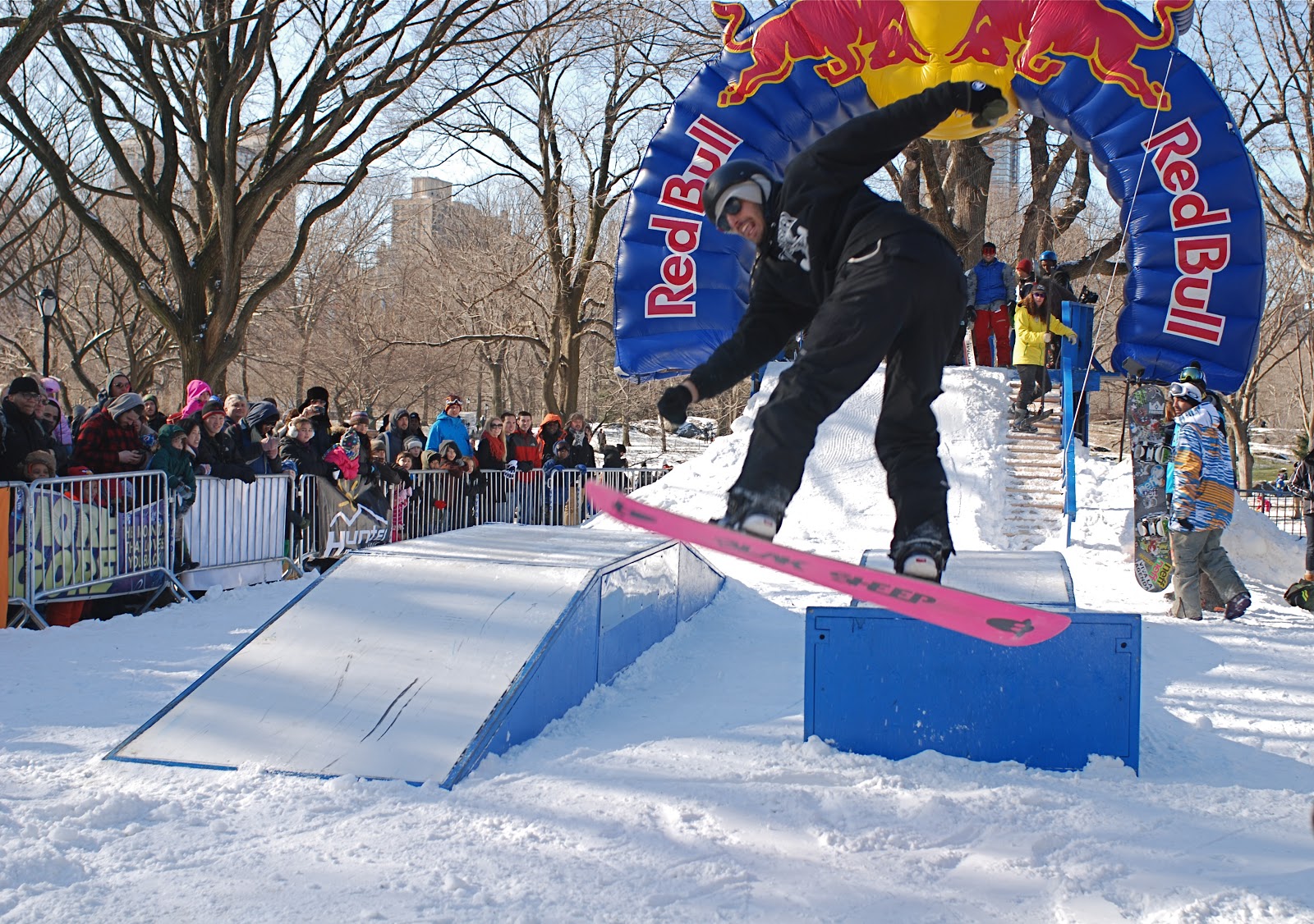 The NYC Parks Department and the Olympic Regional Development Authority sponsored today's Winter Jam which transformed Central Park into a manmade snow covered winter sports park for people and their pets. It was a perfect day for the event because of the snowfall the night before. The event featured the Lake Placid Snow Field, Cross-Country Skiing, Snowshoeing, Skiing, Snowboarding, Unreal Ice Lounge and the Red Bull MetroRail. Other activities included Learning to Play Quidditch, Animal Tracking with the Urban Park Rangers, Pride of New York Winter Market, NY State Ski Resorts Info Booths and Live Entertainment. This year, there was a Doggie Snow Zone that featured Doggie Snow Park, ‘Ask the Expert’ Booth, Café Area and Doggie Treat Bar, Adoptable Animals, Vendor Booths and a limited Treat Bag Giveaway. As in past years, there was live music, food and beverage booths.