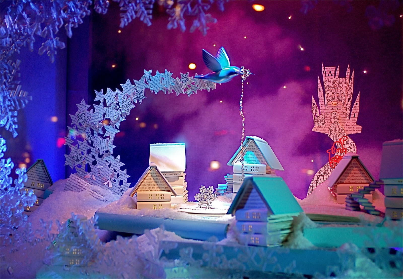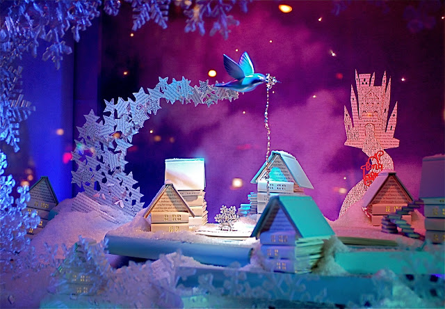 Henri Bendel's window display this year features "Hirschfeld Spectacular". The Fifth Avenue boutique collaborated with Margo Feiden Galleries to create a 3-D tribute to the late line artist Al Hirschfeld, known for his renderings of celebrities spanning a 75-year career. This display imagines a New York townhouse Christmas dinner party with Marilyn Monroe, Sarah Jessica Parker, Liza Minnelli, Woody Allen, Whoopi Goldberg and Audrey Hepburn.