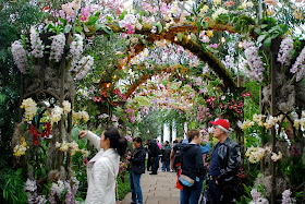 The New York Botanical Garden's orchid show, "Orchid Show: On Broadway" opened yesterday at the Enid A. Haupt Conservatory. Tony Award-winning set designer SCOTT PASK and image-maker DREW HODGES brought together over 300 types of orchids and created displays with dramatic curtains, chandeliers and arcades reminiscent of Broadway's iconic theaters including the Walter Kerr Theater and the New Amsterdam Theater. On a limited engagement, the NYBG Orchid Show is the largest orchid exhibition in America. The botanical garden's Library Gallery has a special exhibition, "Hirschfeld's Broadway Scrapbook" featuring the Al Hirschfeld's private collection of iconoclastic line drawings of Broadway performers, authors and songwriters. Hirschfeld was one of the most important figures in contemporary caricature.