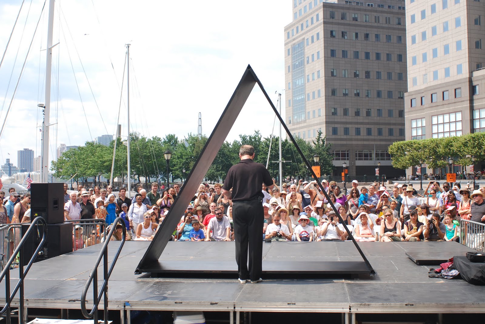 The Extraordinary Moves performances on the World Financial Center Plaza last weekend also included Michael Moschen's juggling act. Mr. Moschen is considered to be the supreme juggling virtuoso of our time. He brought his artistry to the Plaza with his works including "Triangle", in which he juggled three balls within a triangular structure creating a musical and visual work of art.